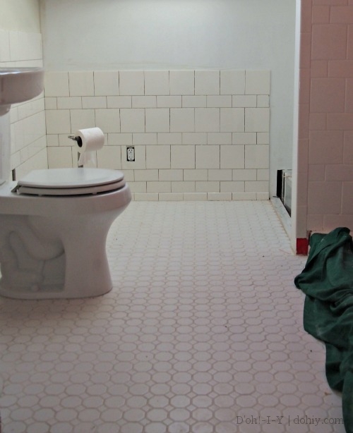 I’m not the best tiler the world has ever seen, but I am using white grout, which is going to blend in and minimize any amateur effect.