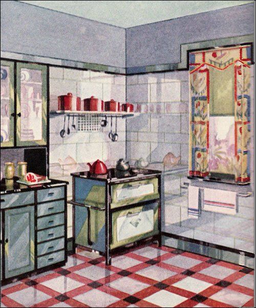 A while back, I ran across this image from a vintage Vitrolite ad, and I fixated on the wall tile pattern.