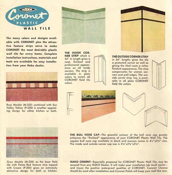 It’s new old stock 1950s plastic tile, and came in its original box with most of the tiles still wrapped in bundles.