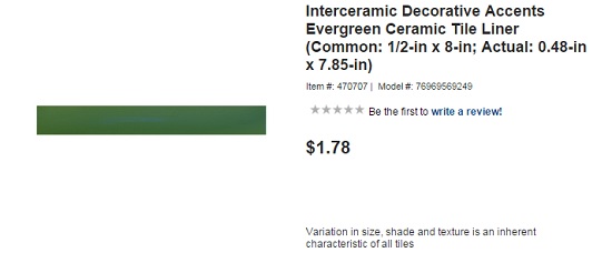 Instead, I ordered Interceramic liner tile from Lowes in the right color (and material).